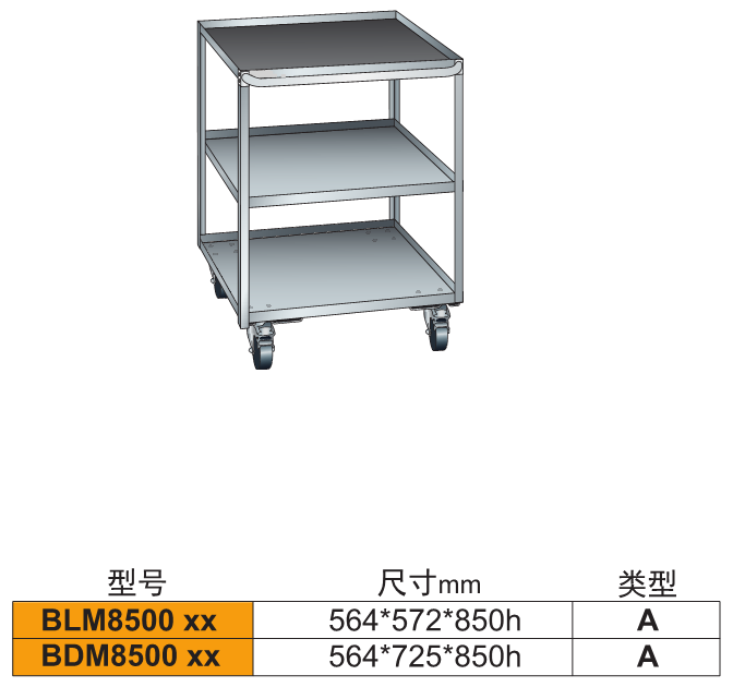 2、由各種型號的工具柜增加頂柜和腳輪等移動部件組成。