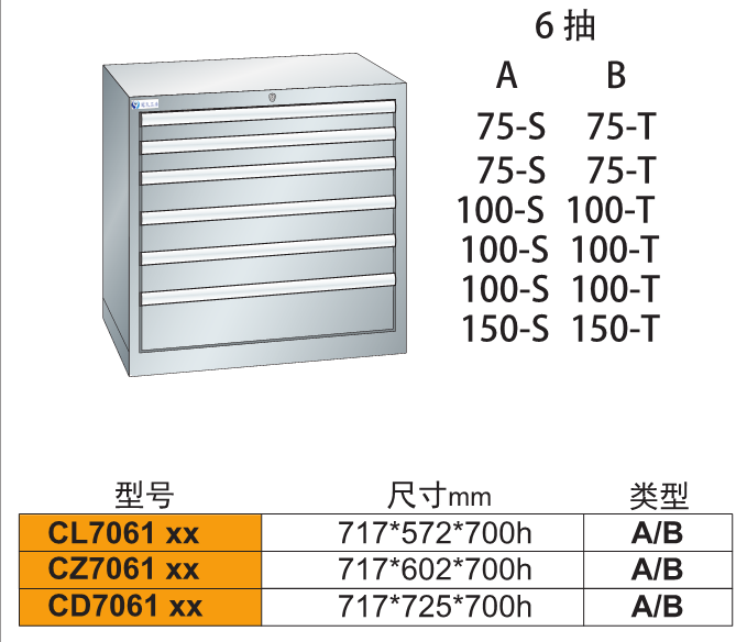 工具柜工具柜C-7061介紹:工具柜適用于工具、刀具、零部件在生產(chǎn)現(xiàn)場中的定置管理,6抽抽屜式設(shè)計,使你的物品存取工作真正做到準(zhǔn)時、準(zhǔn)確、卓效、低耗。