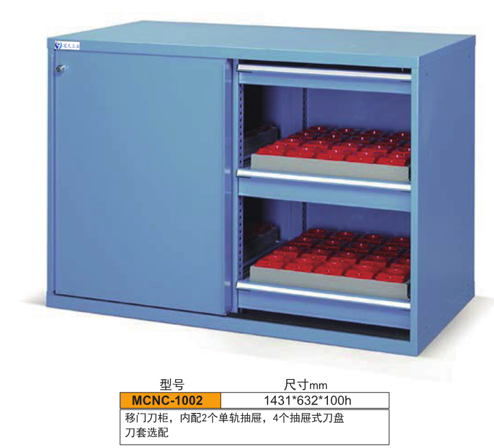刀具柜,是專門用來存放各種車床上常用刀具的柜子。刀具柜的柜體一般采用冷軋鋼板制成,堅固耐用。刀具柜內常有3-5個橫檔可拉抽屜,抽屜內有ABS材質的刀具套,防滑防油,以便刀具自由組合式的存放。刀具柜一般都為雙門對開式,柜體裝有可調式腳墊,柜體可調整高度,柜子防滑防潮。刀具柜常用在工廠機加工中心,便于刀具的集中管理,取用方便。