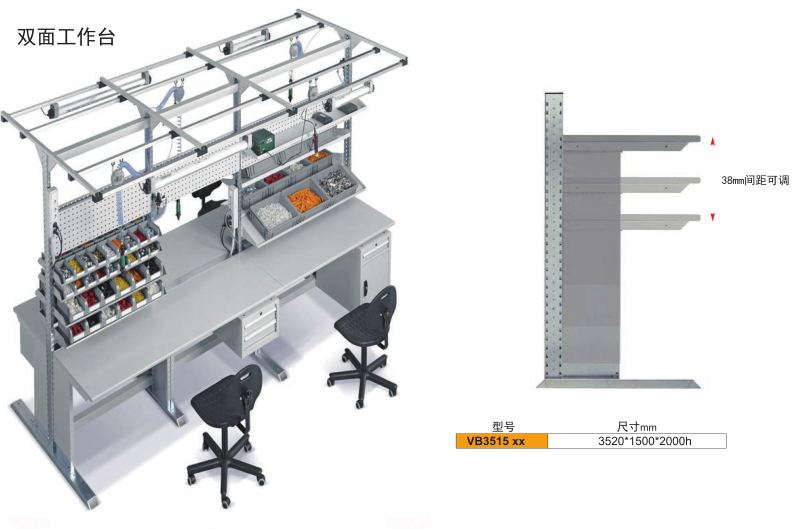 工作臺采用優質冷扎板精工制作而成,堅固的工作桌框架,牢固平穩,可使工作桌承重1000kg;多種工作桌面選擇,可配合不工使用的要求; 工具吊柜(箱),側柜(箱)燈架,調節腳杯,外形美觀;層板,抽屜質量上乘,承重大,抽屜內可根據需要任意分隔;節約空間,適用性強