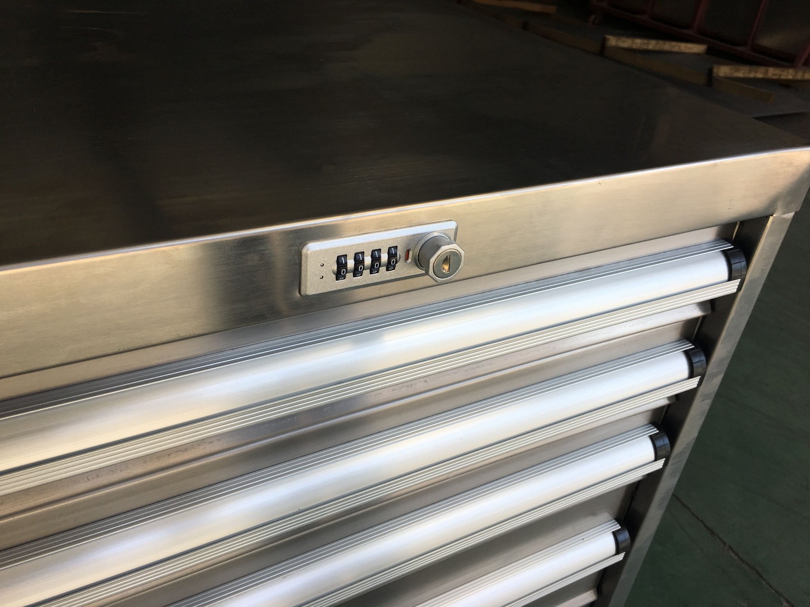 機械密碼鎖工具柜 車 使用SUS304不銹蝕鋼材質 ,可以在各種惡劣環境中使用,耐油,耐酸堿性佳。