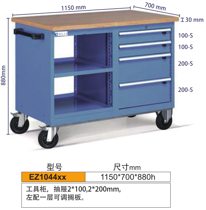 1、拓展工具車是在標準工具柜的基礎上設計而成以更小的空間更加低的成本實現更大的存儲空間