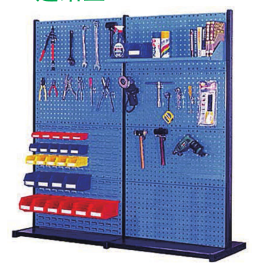 物料整理架物是以方孔掛板和百葉掛板為主要部件,結合背掛零件盒、掛鉤、棚板等多種配件使用。對您生產現場的小型少量多樣的工具、物料進行分類存放、方便搬運歸位、充分利用空間,整潔卓效。