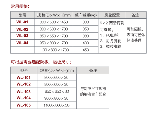 物流臺車存放的產(chǎn)品陳列醒目,在運輸中:一方面對物料的安全起到保護作用。另一方面不會使已分揀配備好的產(chǎn)品導(dǎo)致雜亂。裝卸十分省力;輪子通常設(shè)計為兩只定向輪,兩只萬向輪以方便人工推行。物流臺車可依據(jù)貨物設(shè)計承載重量。
