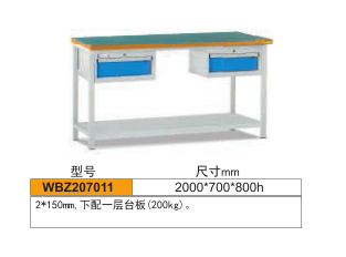 工作臺介紹: 工作臺采用優質冷扎板精工制作而成,堅固的工作桌框架,牢固平穩,可使工作桌承重1000kg;多種工作桌面選擇,可配合不工使用的要求; 工具吊柜(箱),側柜(箱)燈架,調節腳杯,外形美觀;層板,抽屜質量上乘,承重大,抽屜內可根據需要任意分隔;節約空間,適用性強